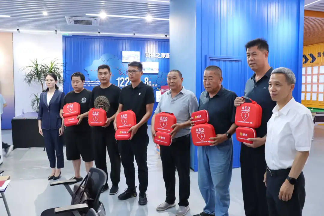 除了“车轮上”的移动守护,应急网络也向宁波全域物流枢纽纵深延伸。宁波堆场仓储协会38家会员企业积极响应,在各企业仓库、门岗、堆场等集卡司机主要出入场所安装58台AED,构筑起固定节点的安全屏障。其中,4家企业更升级打造“车轮上的生命线”红十字救护站,集AED、急救箱、担架及宣教功能于一体,成为区域急救能力提升的示范点。宁波市道路集装箱运输行业工会联合会捐赠的500份急救包、北仑区红十字会提供的76箱消毒湿巾,则进一步夯实了应急物资基础。