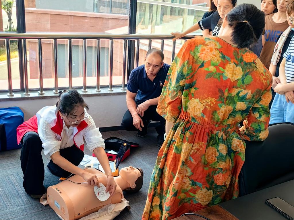 8月22日上午,龙游县红十字会组织应急救护师走进浙江建设技师学院,为校园安保团队开展应急救护知识普及培训。
