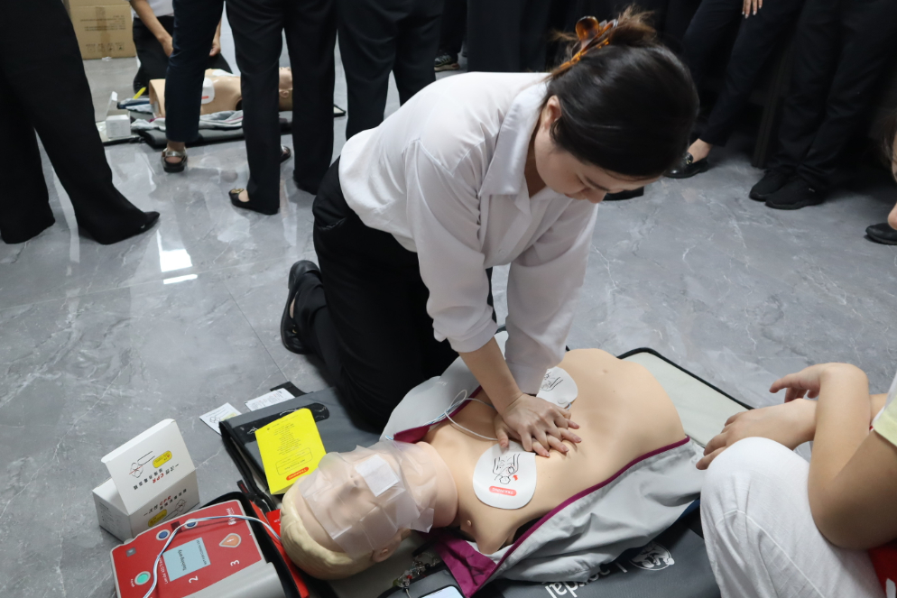 在情景化实训环节,参训学员分组开展心肺复苏(CPR)与自动体外除颤器(AED)操作演练,并结合创伤救护进行实战考核。通过高度还原的突发事件模拟,学员们精准掌握了电极片定位、胸外按压深度及止血包扎等关键技术要点。最终,学员凭借规范操作通过考核,成功获得红十字救护员证书,标志着所学应急技能已切实转化为实战能力。