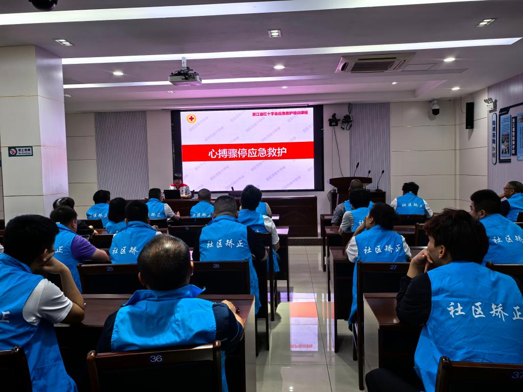 9月25日,诸暨市红十字会积极参与“以矫助矫、能者为师”暨黄丝带帮教活动,在暨阳街道司法所为26名社区矫正对象举办了一场心肺复苏(CPR+AED)取证培训。