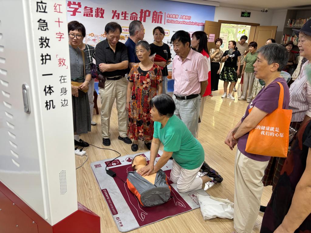河东社区博爱家园开展“人人学急救,急救为人人”开放日活动,现场设置心肺复苏模拟区与海姆立克急救法体验装置,吸引本社区及塘南社区居民积极参与。红十字工作人员系统讲解“黄金4分钟”救护知识,并现场演示心肺复苏操作要领。居民通过实操掌握急救技能,风险防范与应急处置意识得到显著提升。