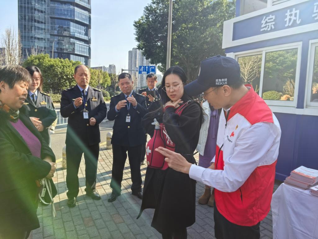 12月19日,宁波市江北区综合行政执法局联合江北全域(红十字)应急救援中心,在湾头综合执法驿站甬江岗亭开展“红领蓝盾闪新辉,岗亭服务零距离”主题活动。