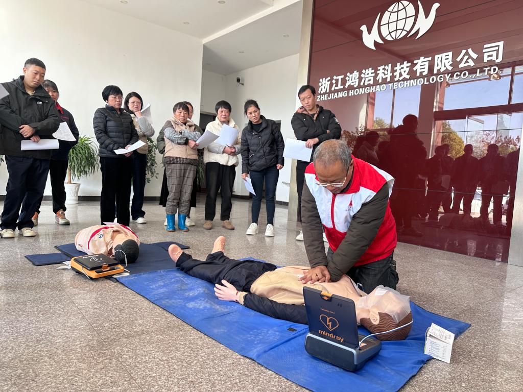 参与培训的员工认真学习每一个操作步骤,积极参与实操练习。大家纷纷表示,此次培训内容实用、针对性强,收获颇丰。此次培训精准贴合企业安全生产需求,有效提升了员工的自救互救能力,推动急救理念深度融入生产一线,为浙江省鸿浩科技有限公司安全生产增添了重要保障。