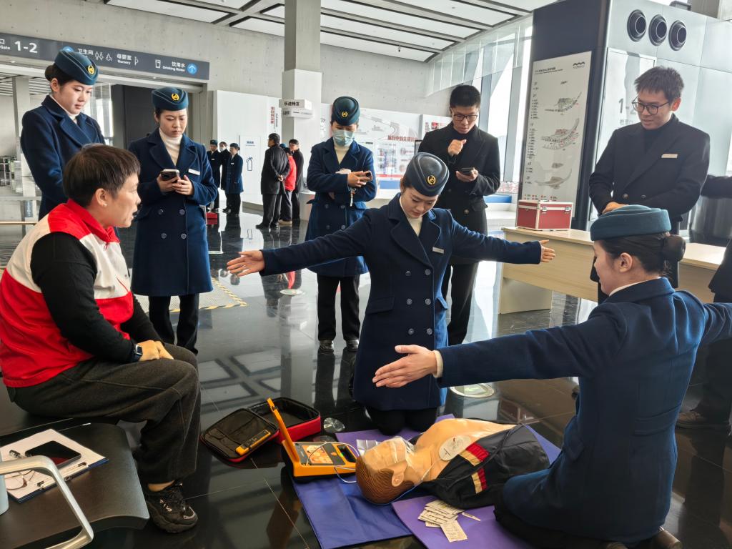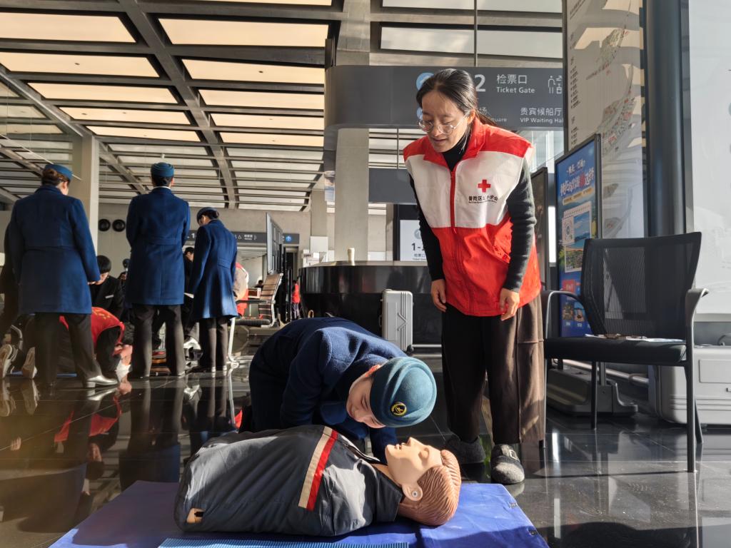 培训在半升洞客运中心举行,课程内容聚焦客运码头、旅游交通等服务场景中可能遇到的突发状况,突出实用性和针对性。红十字应急救护师通过理论讲解、视频演示与实操练习相结合的方式,系统讲授了心肺复苏(CPR)、自动体外除颤器(AED)使用、气道异物梗阻处理以及常见创伤止血包扎等核心急救技能。参训员工在应急救护师的指导下分组开展模拟演练,学习氛围浓厚,操作练习认真投入。
