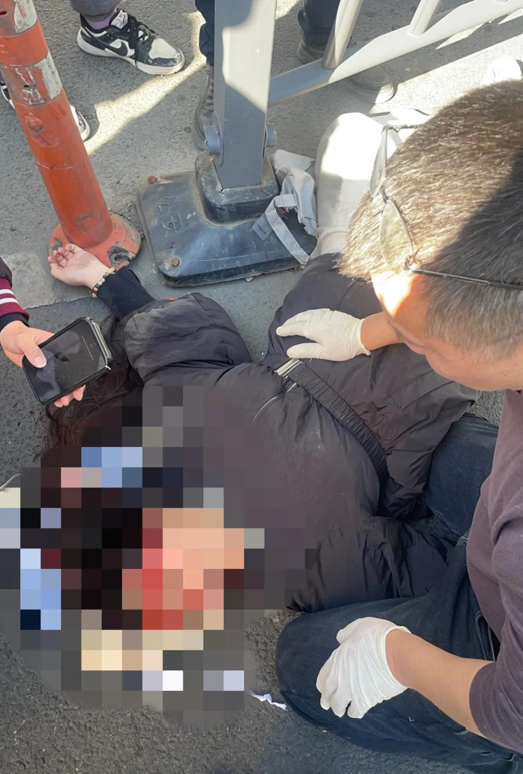 “我是红十字救护员,需要帮助吗?”听到声音后,伤者身边的一位女子连忙说:“需要需要,麻烦快点救救她!”