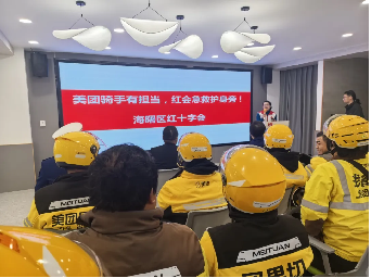 海曙区红十字会联合社区、消防部门,在鼓楼街道商业社区“骑手之家”开展“骑手平安使者,冬季消防共筑”活动。应急救护师对美团骑手们开展应急救护知识技能培训。