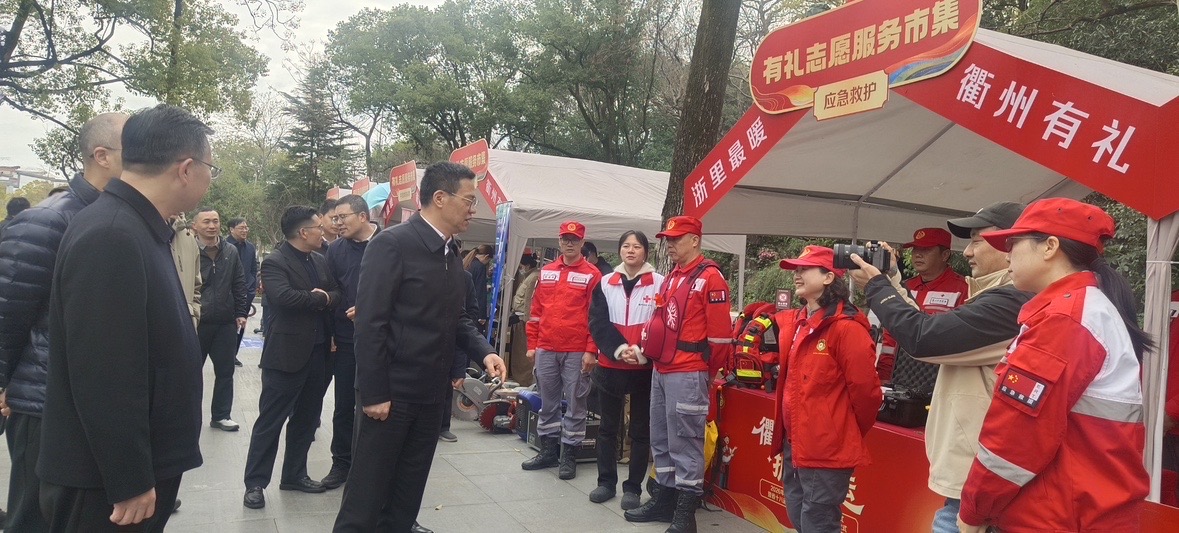 3月3日,2026年衢州市志愿服务主题月启动仪式暨省十八运(省十二残运)志愿者出征仪式在孔子文化公园举行。衢州市红十字会组织志愿者救援队队员参与活动,现场搭建红十字特色展示平台,开展应急救护知识普及与救援装备展示,为省运安全保障筑牢急救防线。