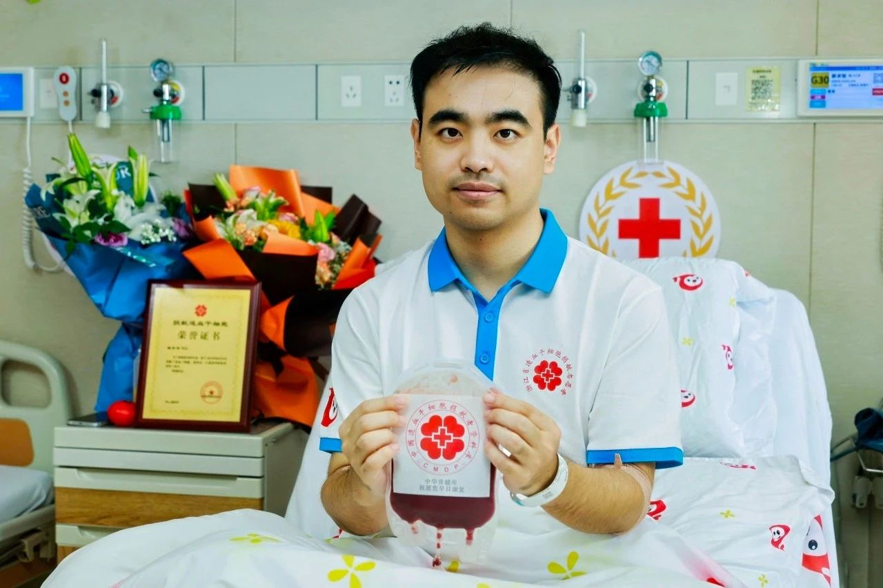 8月15日,在杭州市某造血干细胞采集医院,31岁的肿瘤内科医生蔡承智成功捐献209毫升造血干细胞混悬液,成为浙江省第1249例、杭州市第391例、上城区第63例造血干细胞捐献者。