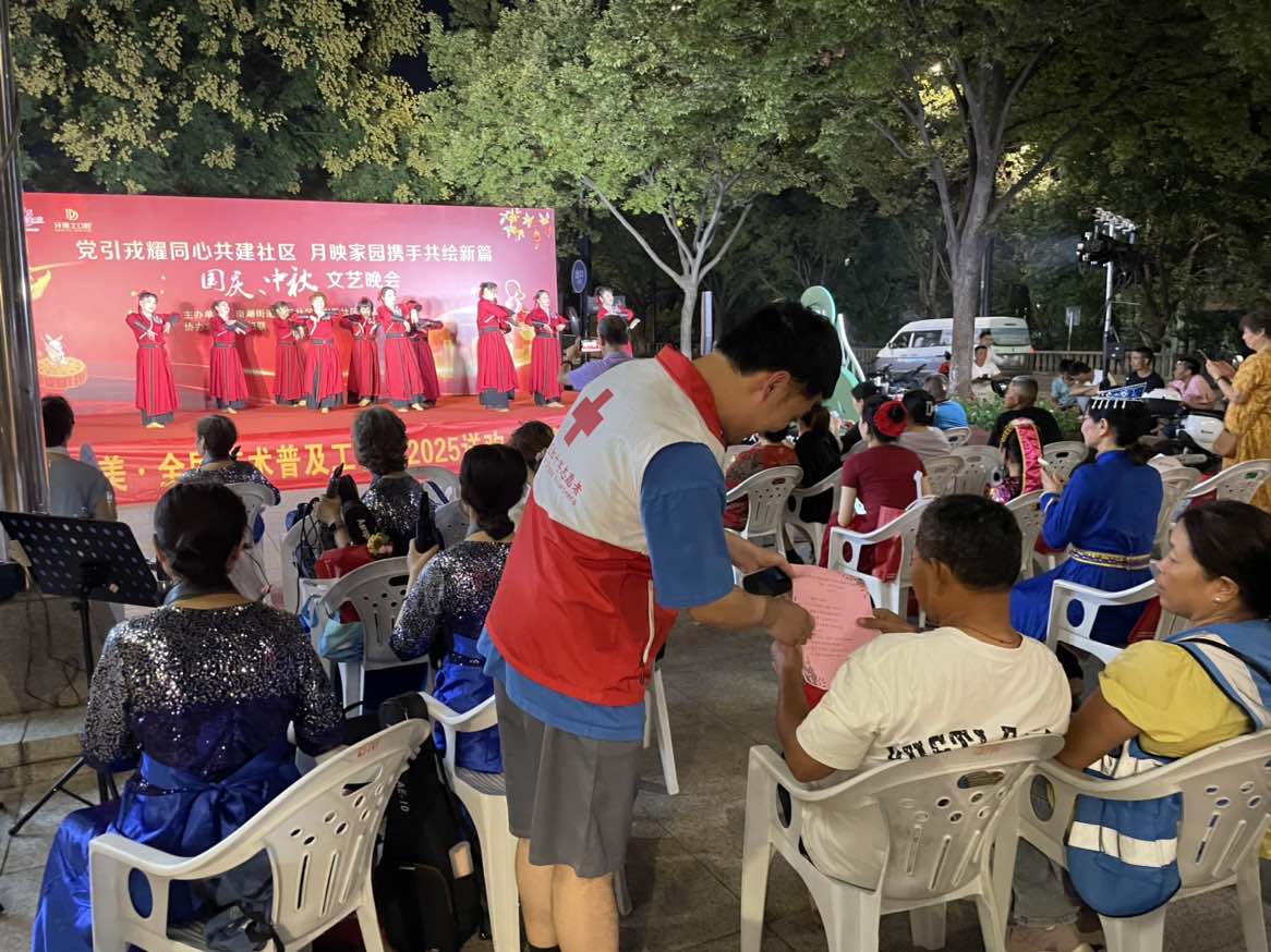 南湖街道南溪社区红十字会在社区文艺演出现场组织志愿者开展“生命接力·大爱传递”人体器官捐献志愿登记宣传活动,普及捐献知识与政策,引导更多的爱心人士加入捐献行列。