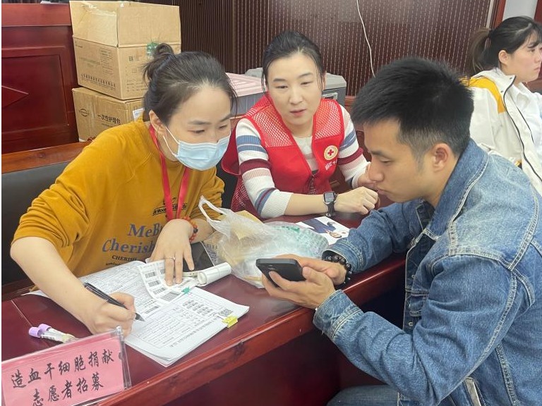 活动现场热血传情,爱心涌动。临时献血大厅内人头攒动,在血站工作人员和志愿者的引导下,干部群众有序完成登记表填写、血压测量、血液初筛等流程。众多爱心人士伸出手臂,让殷红的血液缓缓流入采血袋,汇聚成生命的希望。现场设置了造血干细胞志愿捐献服务摊位,吸引了不少群众驻足咨询。短短一天,就有10位志愿者现场采集血样,登记成为造血干细胞捐献志愿者,为血液病患者送去的生命希望。