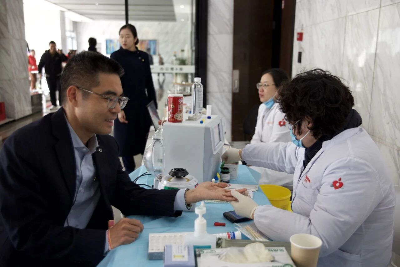 活动现场,除了常规的无偿献血外,还特别设立了造血干细胞捐献入库采集、中医养生、金融防诈骗等区域。来自楼宇各理事单位的企业员工们,在工作间隙抽身而来,在志愿者的指导下排起长队。他们依次进行身份核验、血液检测,登上献血车的步伐坚定而从容,用殷红的热血为生命“续航”。