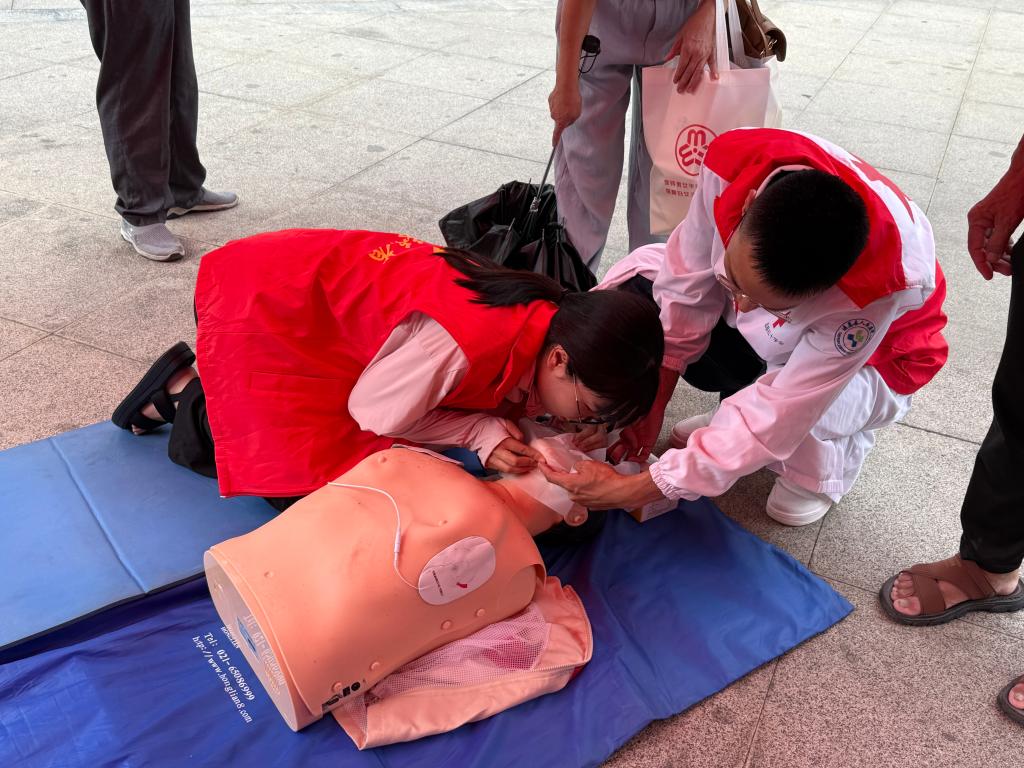 在实操环节,志愿者手把手指导群众进行心肺复苏模拟练习,纠正按压姿势与频率,确保参与者掌握关键技能。通过互动教学,大家不仅提高了对急救知识的认识,也增强了在紧急情况下的自救互救能力。