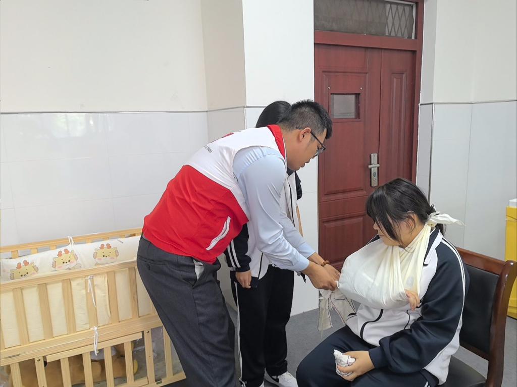 在实操练习环节,学生们表现出极高的学习热情。在应急救护师的悉心指导下,同学们分组利用模拟人反复练习胸外按压的频率与深度,掌握人工呼吸的正确要领,并相互扮演伤者与施救者,练习了绷带、三角巾等多种包扎技巧。过程中,应急救护师耐心纠正每一个不规范的动作,确保大家能够准确掌握关键急救技能。
