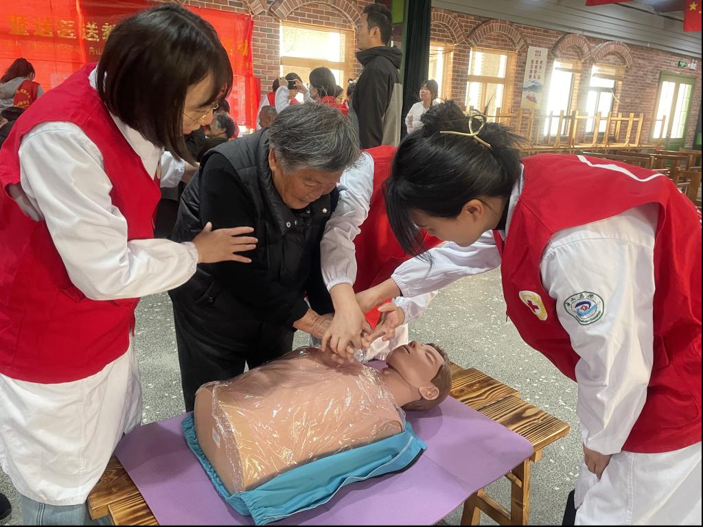 与此同时,活动现场,志愿者利用模拟教具,手把手指导居民学习心肺复苏和海姆立克急救法的操作要领,通过反复演示与纠正,帮助大家掌握基本急救技能,提升应对突发事件的能力,助力更多人成为生命的守护者。