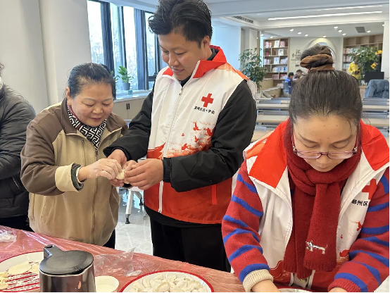鄞州区文汇社区红十字志愿服务队开展爱心包饺子活动,为新就业人员送上冬日关怀。活动现场,志愿者们分工协作、默契配合,高效完成食材处理、包饺子等工序,不一会儿,饱满的饺子便整齐排列。饺子煮好后,志愿者们将热气腾腾的饺子分发给新就业人员,并与他们亲切交流、倾听心声。一份份饺子,驱散了冬日的寒意,也送上了社区红十字会真挚的关怀。