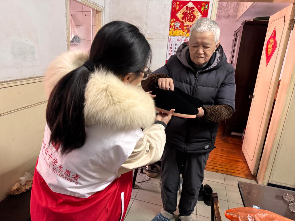新嘉街道月河社区红十字会展“寒冬送暖·情系夕阳”关爱活动,将一双双饱含暖意的棉布鞋送到独居老人手中,用实际行动传递关怀与温情。