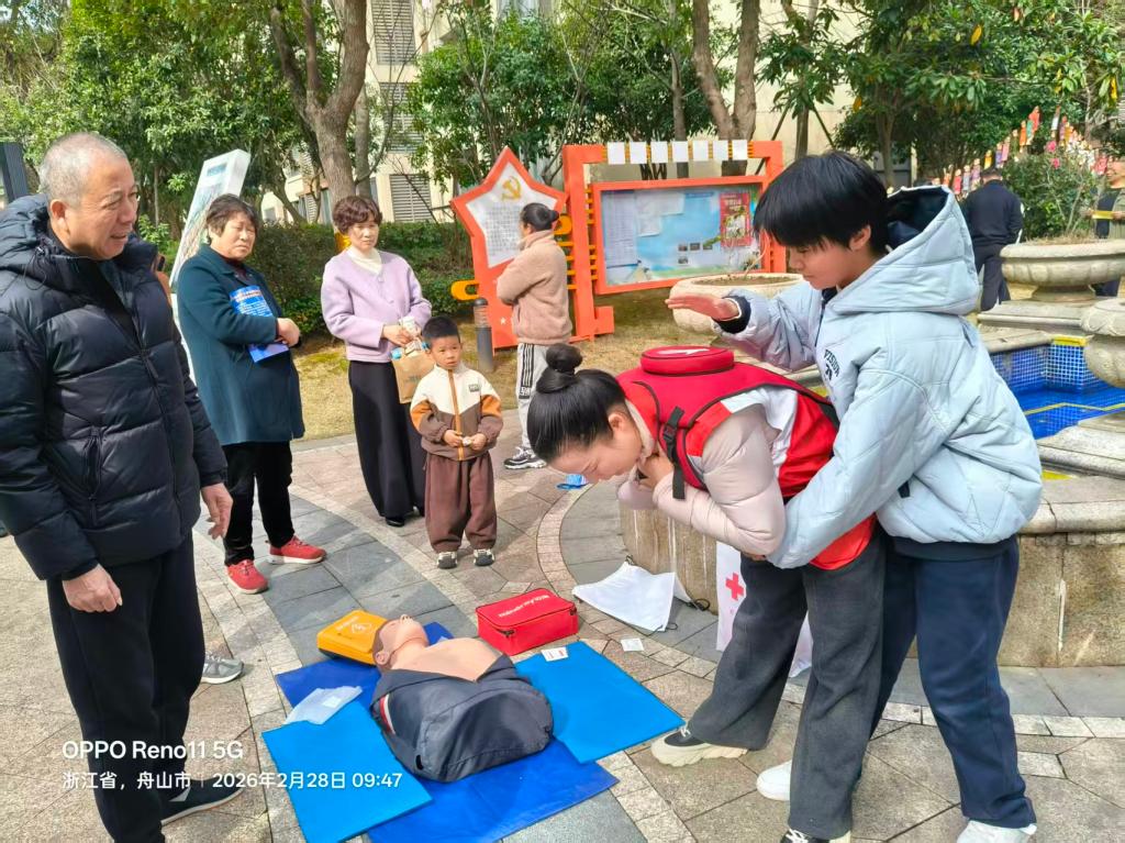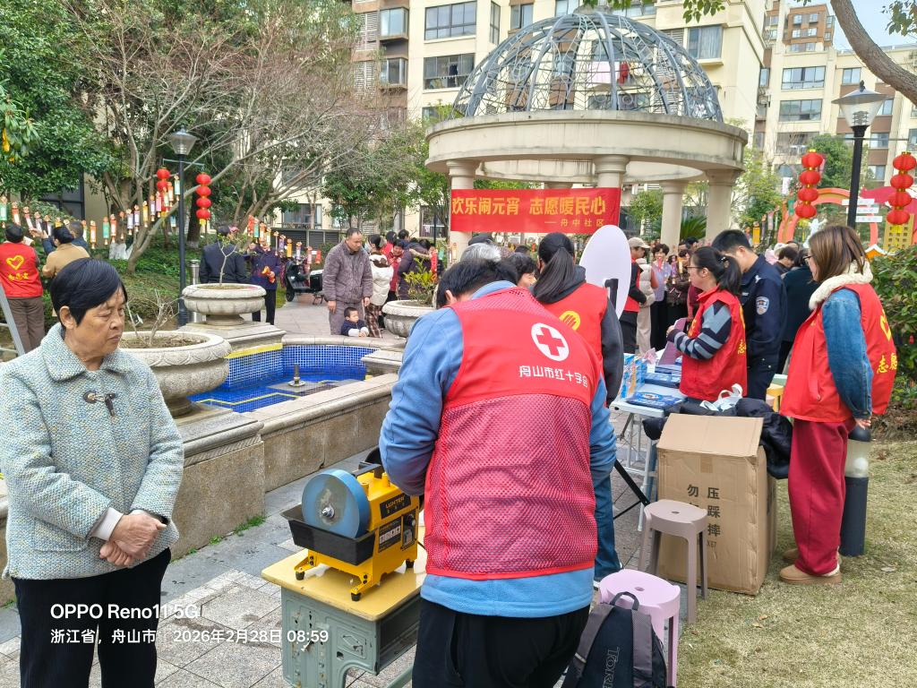 2月28日上午,舟山市红十字会分别在金鸡山社区和舟中社区同步开展元宵节主题志愿服务活动,将应急救护知识、便民服务与节日祝福送到居民身边,以实际行动弘扬雷锋精神和红十字精神,推动“救在身边 长者安心”行动走深走实。