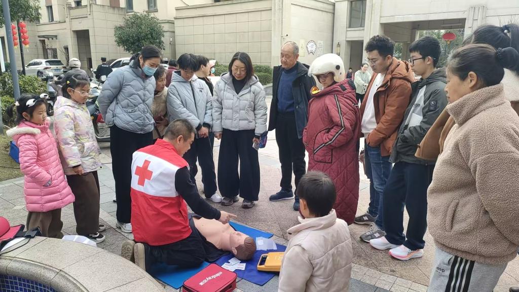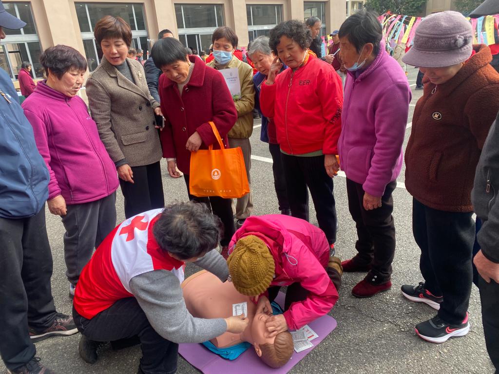 在金鸡山社区党群服务中心,市红十字会志愿者积极参与“党建联建凝合力,‘锋’火相传扬志愿”主题活动。便民服务区内,志愿者设立应急救护宣传展位,向居民发放急救知识手册,并现场演示心肺复苏、气道异物梗阻解除等技能,吸引了众多居民驻足学习。同时,志愿者跟随社区工作人员走访辖区高龄老人,送上亲手包的汤圆和节日问候,还为老人测量血压、普及冬季保健常识,将“长者安心”的关怀实实在在送到老人心坎上。
