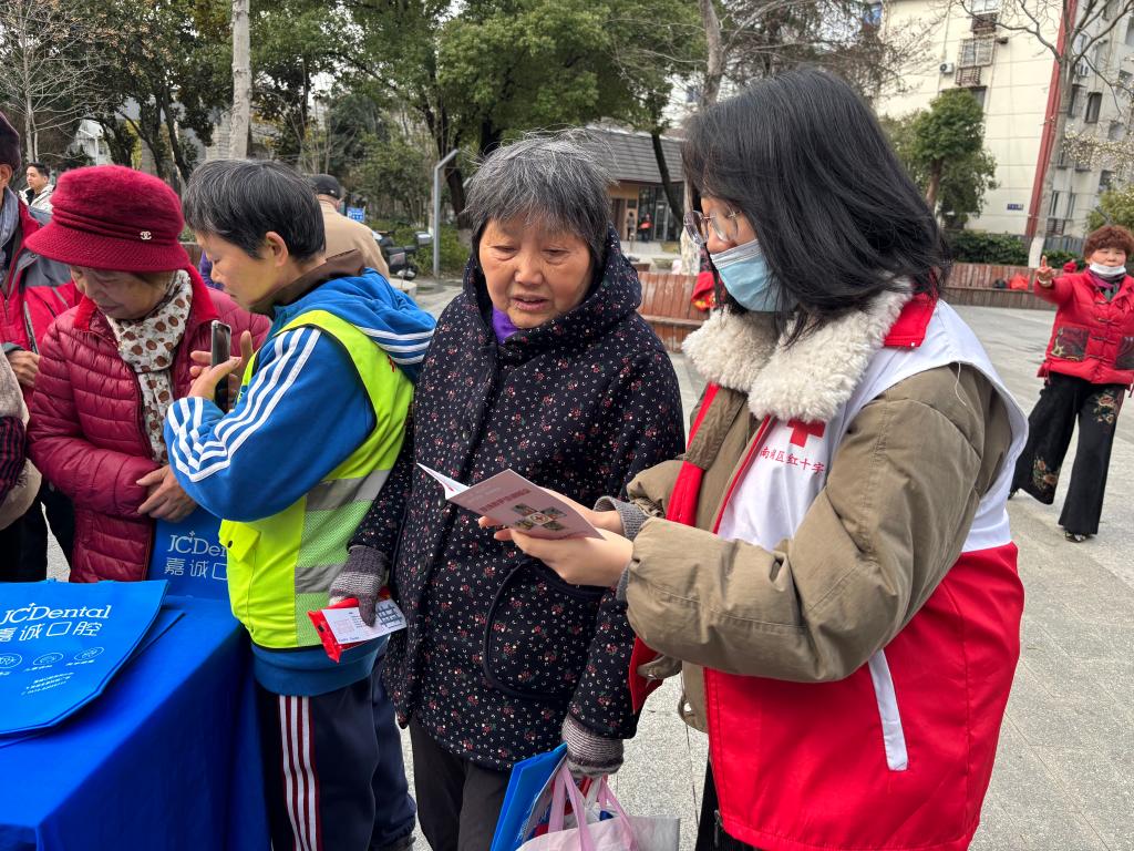 新嘉街道栅堰社区红十字会参加“便民服务+红十字”主题志愿服务,将接地气的便民项目与红十字精神传播相结合,志愿者宣传无偿献血、造血干细胞捐献和人体器官和遗体(组织)捐献的相关知识,用“举手之劳”汇聚邻里守望的温暖力量。