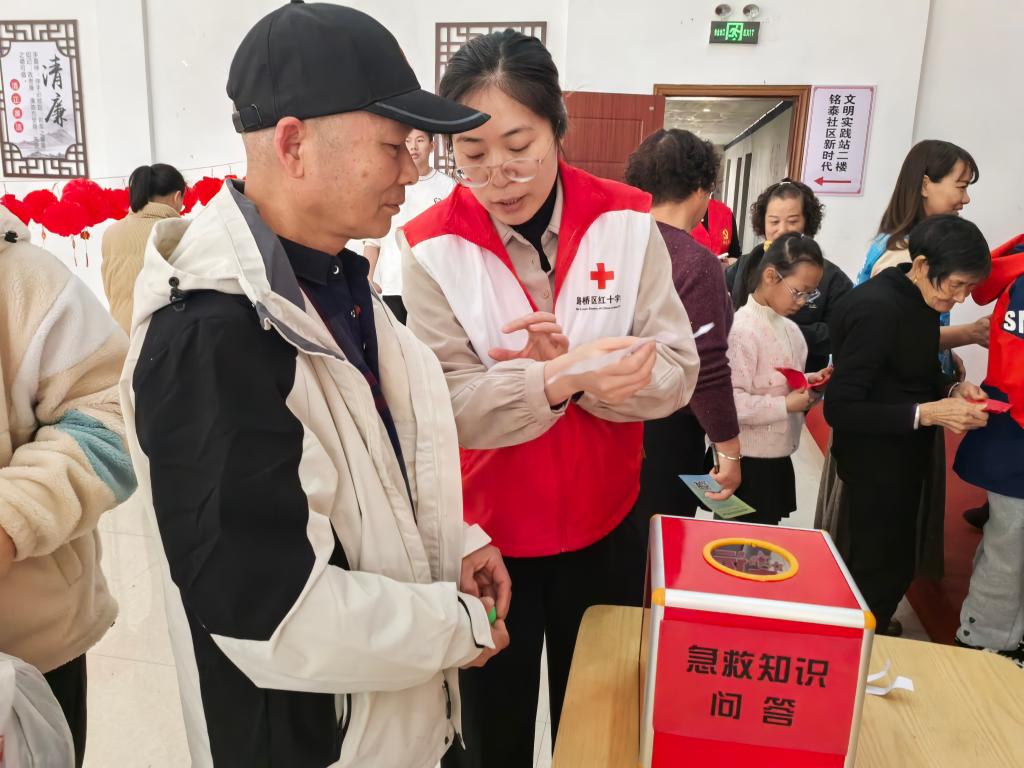 最受居民欢迎的当数急救知识有奖问答环节。“AED是什么?”“遇到气道异物梗阻怎么办?”一个个贴合生活实际的问题抛出,居民们争相抢答,现场气氛瞬间被点燃。答对题目的居民收获了急救包作为奖励,在欢声笑语中巩固了所学知识,真正实现“学练结合、学以致用”。
