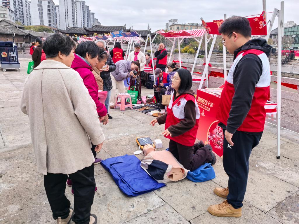 3月3日上午,台州市路桥区学雷锋志愿服务主题月活动启动仪式暨“万朵鲜花送雷锋”活动在十里长街福星阁广场温情启幕。在众多志愿服务摊位中,路桥区红十字会设立的“‘救’在身边”科普服务摊位,凭借“干货满满”的实用内容,吸引了众多群众驻足学习。