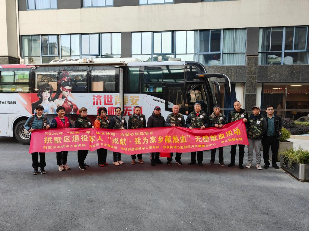 冬日晨光中,一场温暖而铿锵的热血接力在杭州市拱墅区东新街道展开。此前,由东新街道红十字会携手拱墅区退役军人事务局、浙江康静医院共同发起的“戎献·我为家乡献热血”退役军人无偿献血专场活动,吸引了众多退役军人、医护人员和市民踊跃参与。70余位爱心人士伸出手臂,累计献血超过19000毫升,用行动诠释奉献,以热血守护生命。